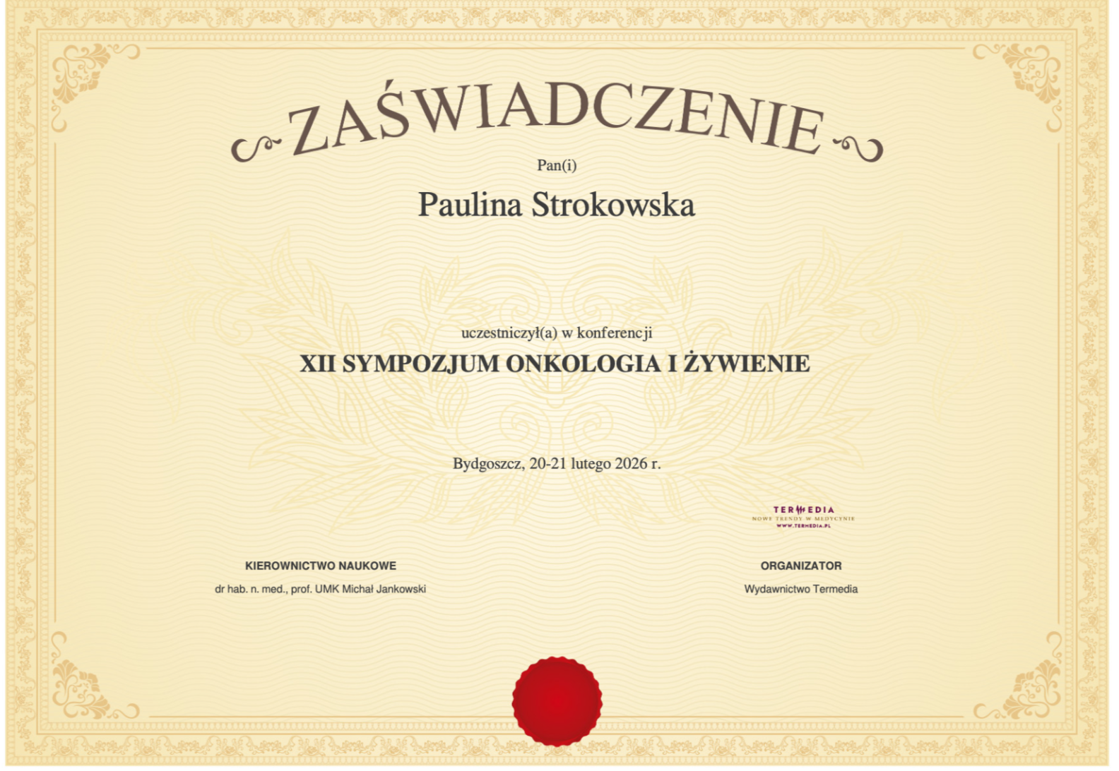 Nieustannie pogłębiam swoją wiedzę z zakresu żywienia i psychologii jedzenia, co pozwala mi lepiej zrozumieć, jak ważne jest odpowiednie odżywianie dla naszego zdrowia. Dzięki temu dbam nie tylko o siebie, ale również o swoich najbliższych. Poszerzając swoją wiedzieć i umiejętności podjęłam kolejny krok edukacji i rozpoczęłam studia dietetyki na Gdańskiej Akademii Medycznej Nauk Stosowanych.